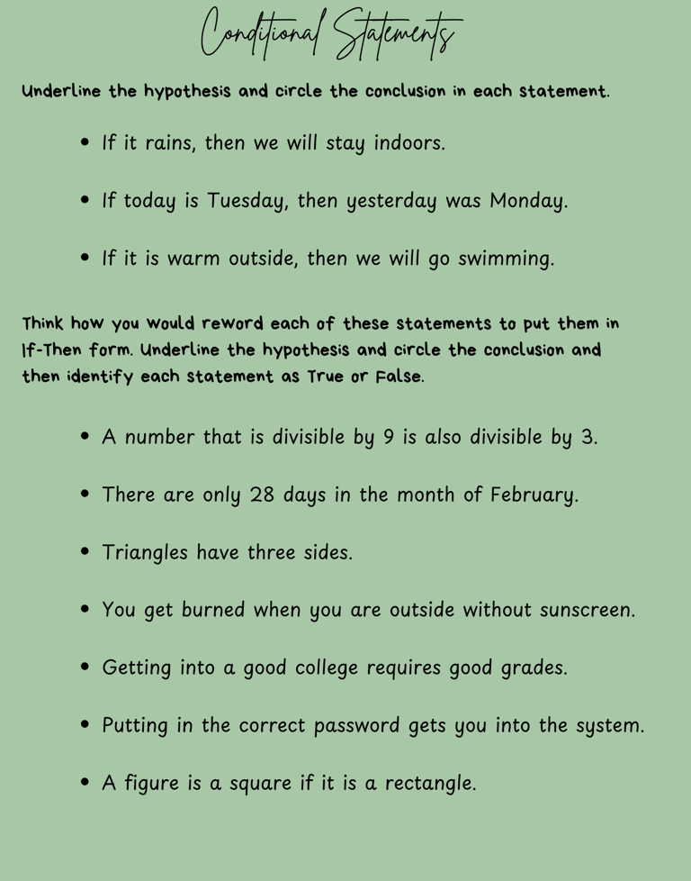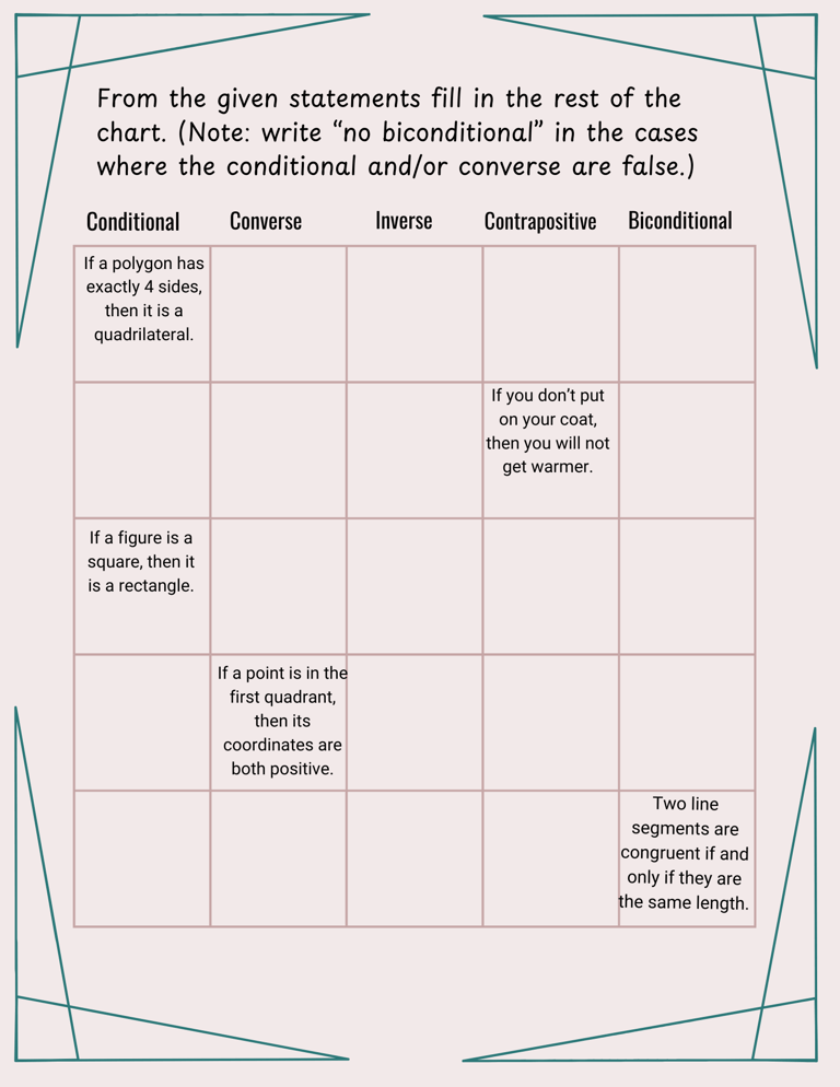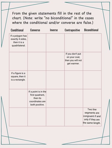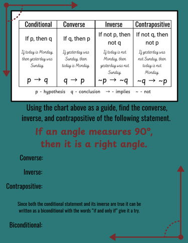 Conditional, Converse, Inverse, Contrapositive, and Biconditional Statements