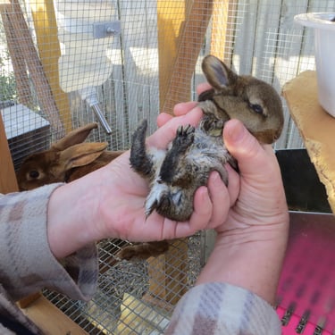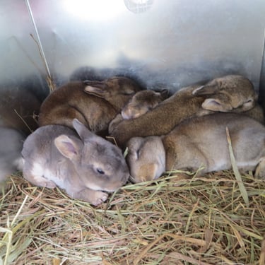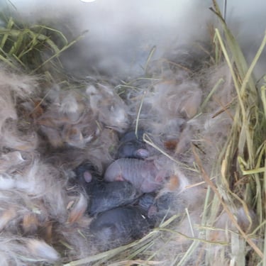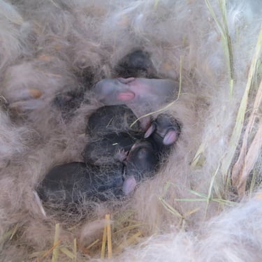 Ginger's First Litter. Ginger had six babies on March 17, 2024. Baby Bunnies are real cute and grow pretty fast. Enjoy the pictures of our baby bunnies. Only one grey bunny in this litter.