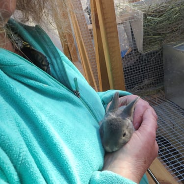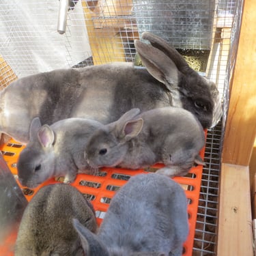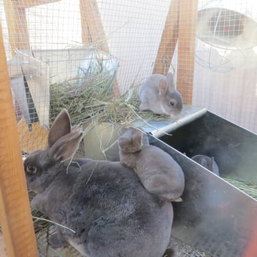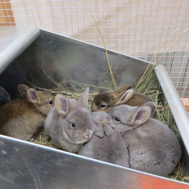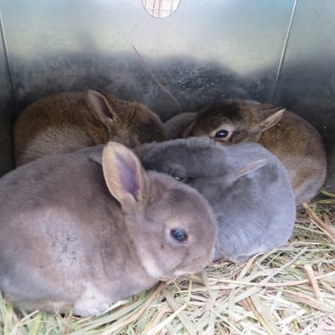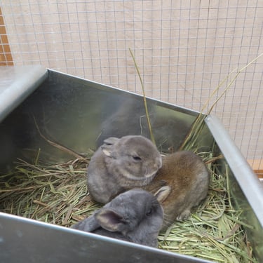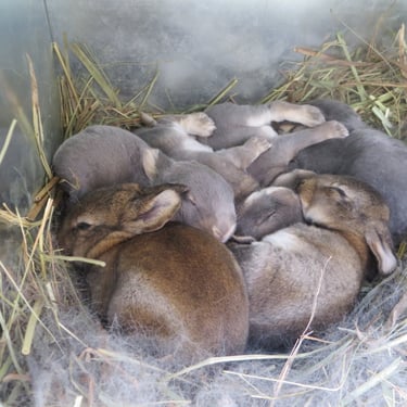 Parsley's First Litter. Parsley had six babies on February 29, 2024. Four look like Parsley and 2 look like Sunny. We will see have they look when they are a bit older.