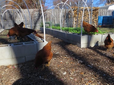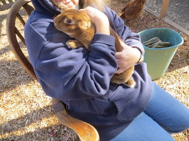The chickens enjoyed their time out of the run while we did the rabbits nails.