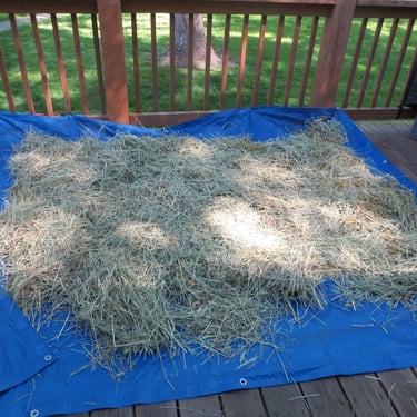 Both Martin and I keep forgetting to put the lids back on the feed cans full of hay. Most the time, it doesn't matter, but a couple of times it has rained. The first time, we lost a lot of the hay, because we thought that we had dried it out sufficiently and put it away. When we opened the extra can we had put some of the hay in (It doesn't fit so nicely when it has been spread out.) it was moldy and we had to through it away.